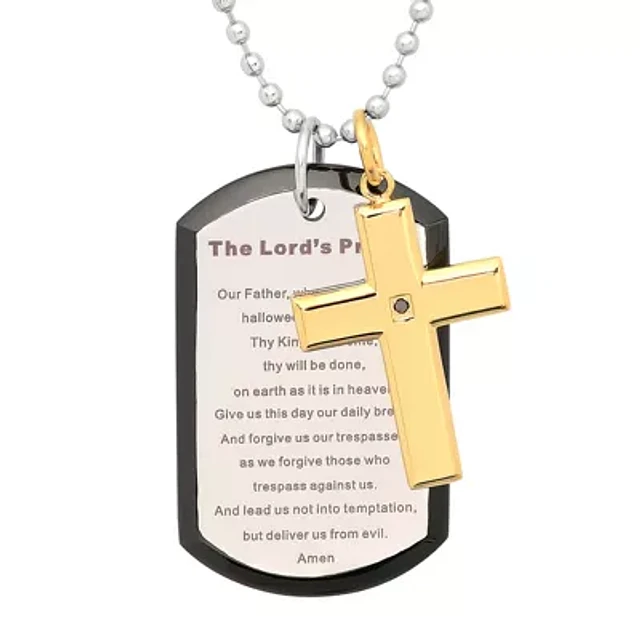 Mens Two-Tone Stainless Steel Diamond-Accent Lord’s Prayer Cross Pendant Necklace