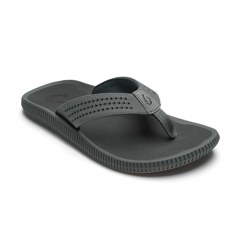 OluKai Craftsmanship: Features Kalo plant-inspired laser-cut upper straps and an embroidered hook logo.