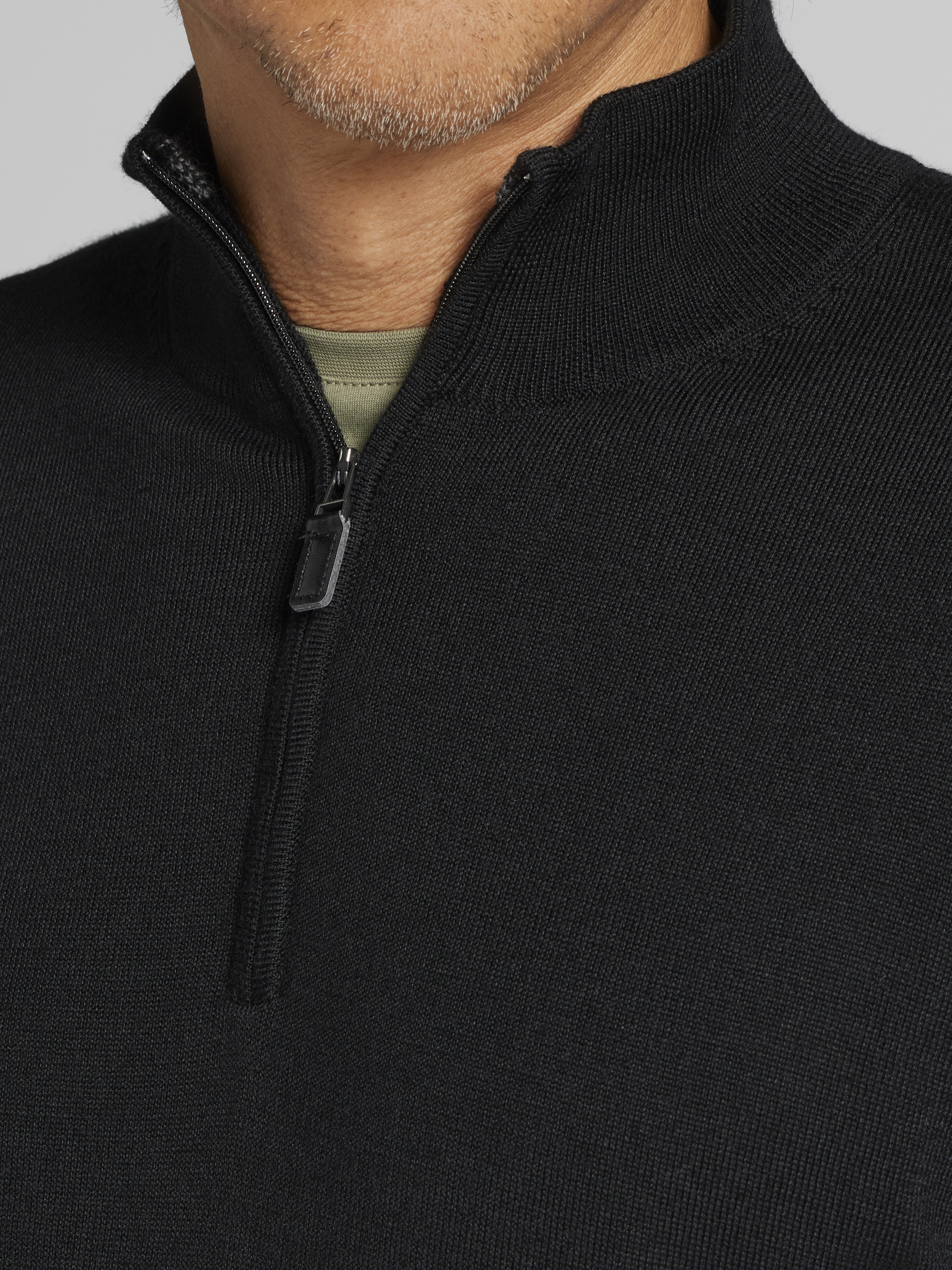 Crafted for comfort and style, this sweater is a versatile layering essential. Made from fine Merino wool, it offers lightweight warmth, natural breathability, and a refined look that transitions effortlessly from work to weekend. The Modern Fit ensures a clean, tailored silhouette, while the 1/4-zip design adds a polished, contemporary edge.
