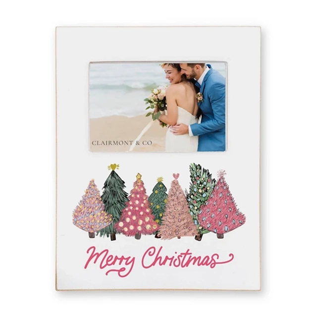 Merry Christmas Pink Trees Picture Frame