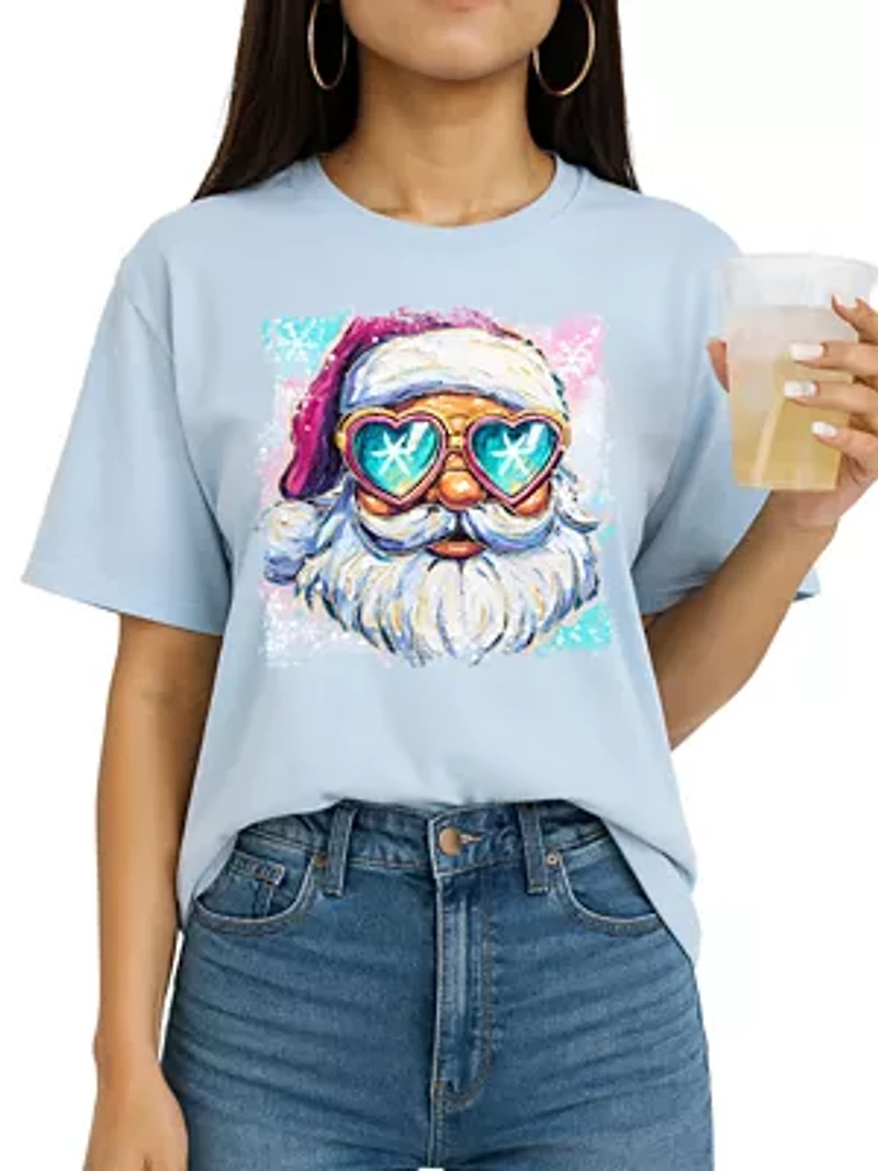Bring a splash of retro holiday flair to your wardrobe with this vibrant Christmas tee featuring a bold, artsy Santa design with colorful heart-shaped sunglasses and playful paint-splatter details. The eye-catching graphic blends festive charm with a trendy, modern twist, making it perfect for holiday gatherings, gift exchanges, or spreading cheerful vibes all season long. Made from soft, breathable fabric with a comfortable relaxed fit, this shirt feels as good as it looks and holds its vivid print beautifully wear after wear. Pullover Crew neck Short sleeve, Drop shoulder sleeves Unlined USA Imported Product Specifications Regular Material & Care 100%CombedCotton Machine washable