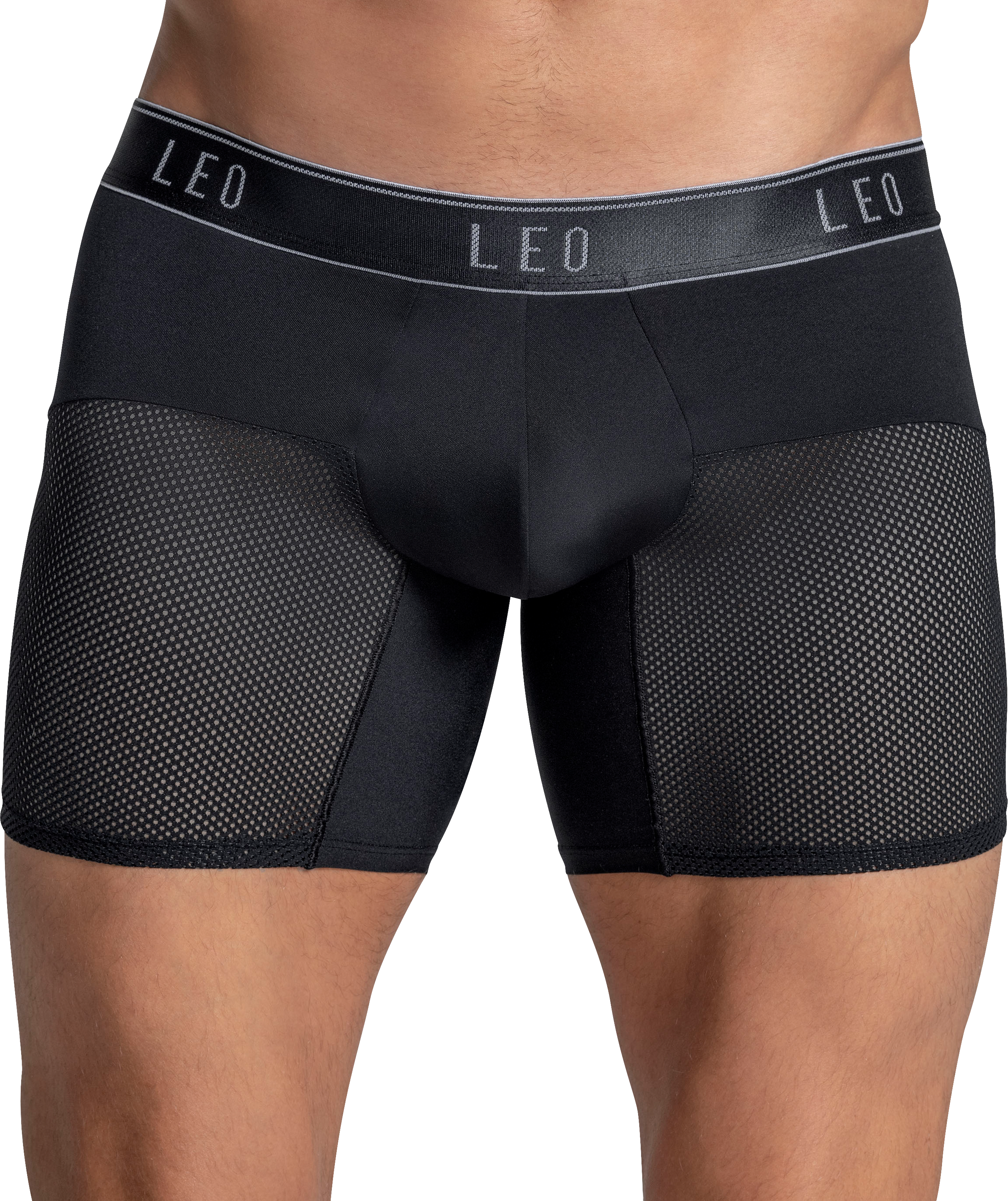 Keep it cool where it counts. These mesh boxer briefs bring a whole new level of breathability to your daily grind. With a no-ride-up leg, flat elastic waistband, and contoured support pouch, they've got comfort and function dialed in. Made with a sleek power-mesh design, these low-rise briefs stay fitted and feel like second skin. Whether you're breaking a sweat or lounging, these are your go-to for staying fresh and comfy. Bonus: the mesh detailing adds a subtle touch of style without trying too hard. Underwear just got an upgrade, and it's all about you!