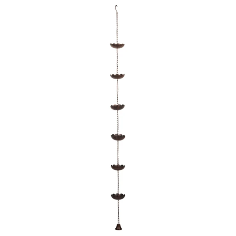 Add beauty and function to your outdoor space with this Metal Hanging Rain Chain! Designed with a series of scalloped cups, this chain guides rainwater from your gutter to the ground in a graceful, cascading flow. Rain chain measures 60 in. Crafted of metal Features scalloped cups Safe for outdoor use Care: Wipe with a soft, dry cloth. Contact your local Kirkland's store for availability. Quantities and selection may vary by location.