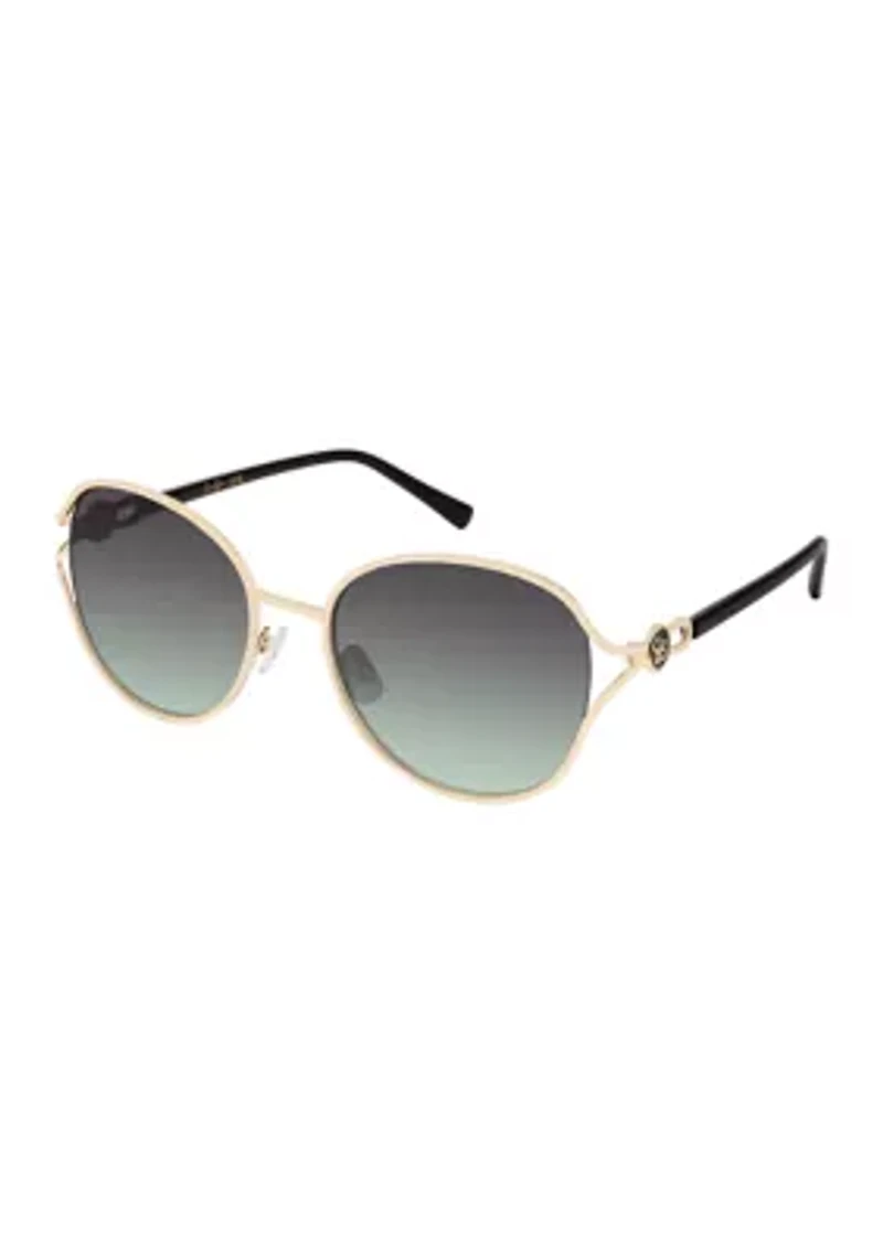 These Jessica Simpson sunglasses feature stylish oval frames in a polished gold finish with vented detailing for a modern, sporty twist. Imported Product Specifications 136mm x 16mm x 140mm Material & Care Metal Clean with a soft cloth