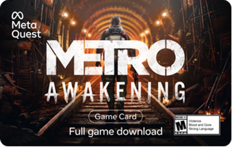 Metro Awakening is a story-driven first person adventure built exclusively for VR that blends atmospheric exploration, stealth and combat in the most immersive Metro experience yet. The year is 2028. The survivors of nuclear Armageddon cling to existence in the buried subways beneath Moscow. Put on your gas mask and brave the crippling radiation and deadly threats of the Metro in this chilling, supernatural origins story from series creator Dmitry Glukhovsky. ABOUT THE GAME: You are Serdar, a doctor braving the darkness, crippling radiation and deadly threats of the Metro in the search for your wife and the medication she so desperately needs. As your courage and sanity are pushed to the limit you must learn to walk the line between life and death, the spirit and the material world, and awaken the being you will become… Redeem code on the Meta Horizon app or Meta.com. See detailed redemption instructions on meta.me/card-instructions.