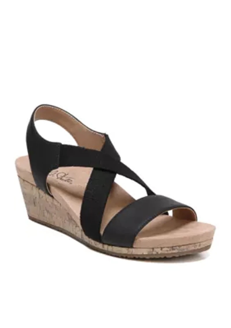 Make every step memorable with the Mexico wedge sandal from LifeStride. Faux leather upper with an open toe, crisscrossing fabric strap accent, heel sling strap, and cork-wrapped wedge. Soft System® comfort package provides all-day support, flex, and cushioning . Traction sole provides you with extra stability . Just Right Height 2 inch wedge heel. Slip-on Open toe Flexible insole, Padded insole Comfort technology China Imported Product Specifications 1.87 in. 0.75 W Material Faux Leather, FABRIC, Synthetic, Polyurethane polyurethane