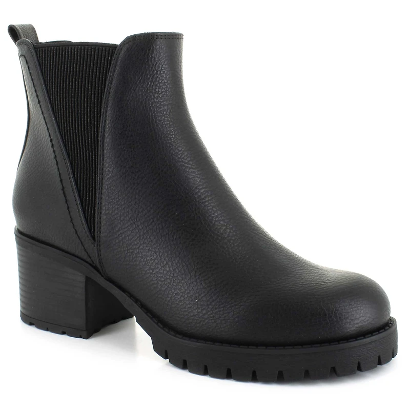 Step into effortless style with the MIA Avya boot. Featuring a sleek synthetic upper and a convenient slip-on design, this boot offers both fashion and comfort. Dual side stretch panels and a back pull-tab make for easy wear, while the cushioned comfort insole ensures all-day support. Finished with a synthetic traction outsole and a block heel, the Avya boot is perfect for any occasion.