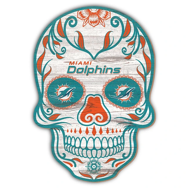 Miami Dolphins 10" LED Tabletop Sugar Skull Halloween Desklite Sign