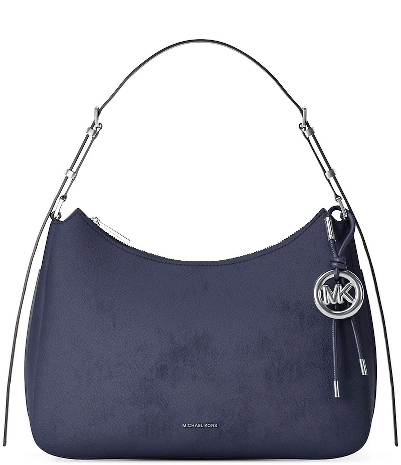 From Michael Kors, the Nolita Medium Top Zip Convertible Shoulder Bag features: nubuck pebble leather zip closure shiny rhodium hardware  interior details: 1 back zip pocket, 2 front slip pockets  Approx. 15.75'' L x 9.75'' H x 5'' W Approx. 11" - 28.5" adjustable strap drop Approx. 1.56 lbs Imported.