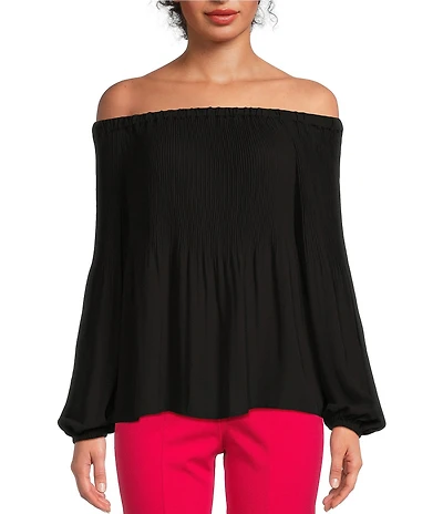 MICHAEL Michael Kors Crepe Pleated Off-the-Shoulder Blouse