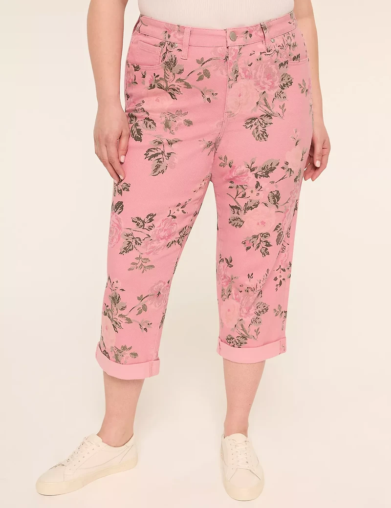 Available in Plus Size This boyfriend printed capri with cabbage roses is sure to get you noticed. FIT: Leg Shape: Boyfriend. A more relaxed fit that sits lower on the hips. Inseam: Short: 21", Regular: 23", Long: 26" Rise: Mid. Hits below natural waist. FEATURES: Three front pockets, two back pockets Button & zip fly closure FABRIC: Denim Turn Inside Out; Machine Wash Cold With Like Colors; Only Non-Chlorine Bleach When Needed; Tumble Dry Low; Cool Iron If Needed 70% Cotton/25% Polyester/2% Spandex/3% Other Fiber WHY OUR DENIM IS THE BEST FOR CURVES: Co-created with you, your requests and feedback fuel our design! Magic behind the seams - best-in-class tech & solutions for the perfect fit, every single time. A variety of lengths, washes and stretch levels so every pair feels like it was made just for you. Item Number #414415 Imported Plus Size Denim ". Plus Size Mid-Rise Boyfriend Printed Capri Jeans, in Roses, 16 Petite, Women's, Lane Bryant