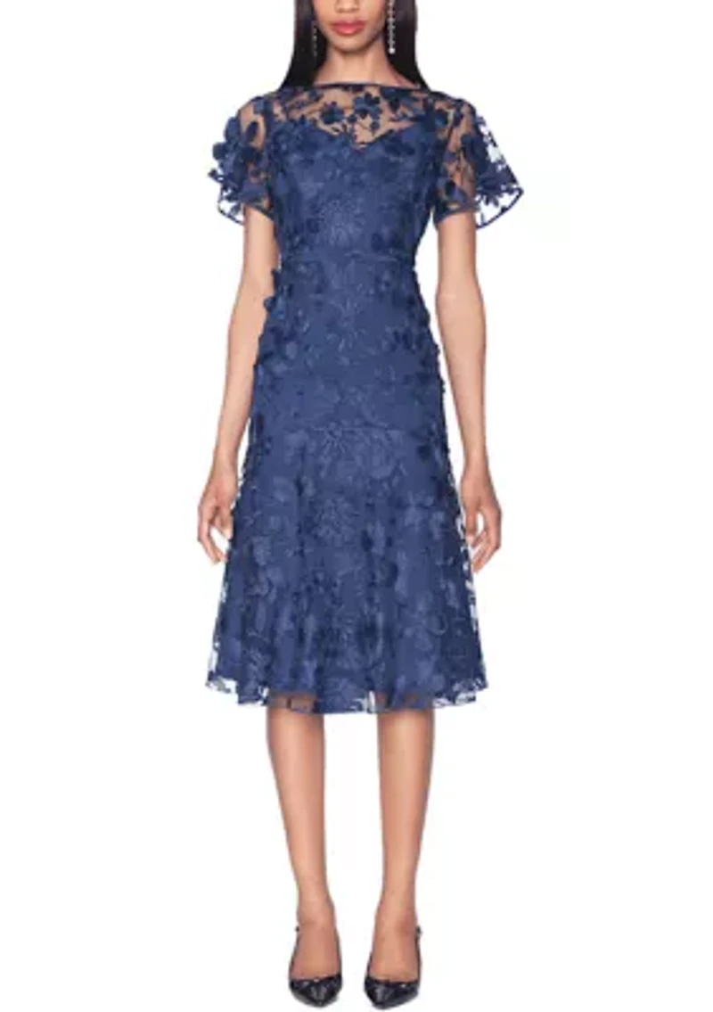 Midi Ruffled Dress with Flounce Zip closure Boat neck Short sleeve Imported Product Specifications 50" Material & Care 100%Polyester Dry clean only