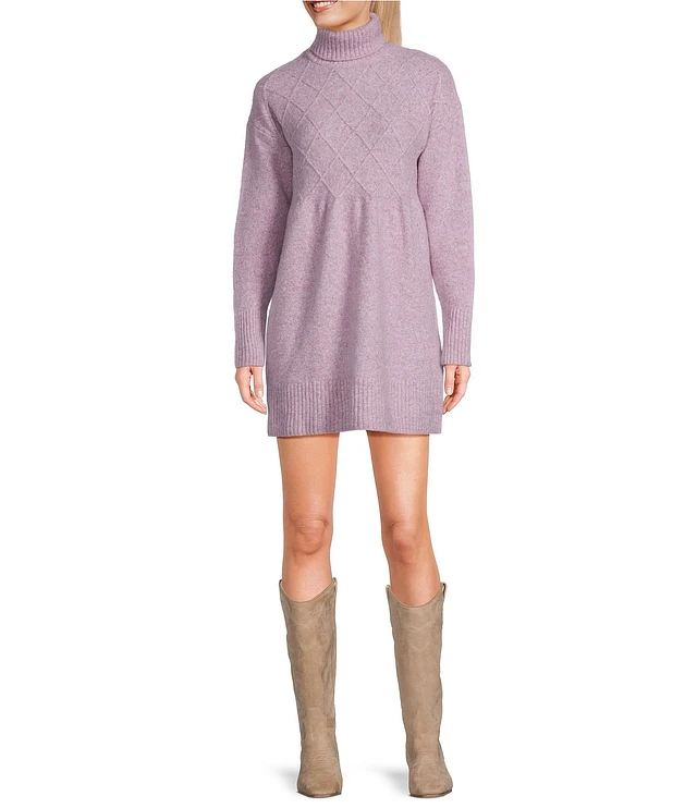 Midnight Doll Metallic Knit Windowpane Plaid Mock Neck Long Sleeve Sweater Dress