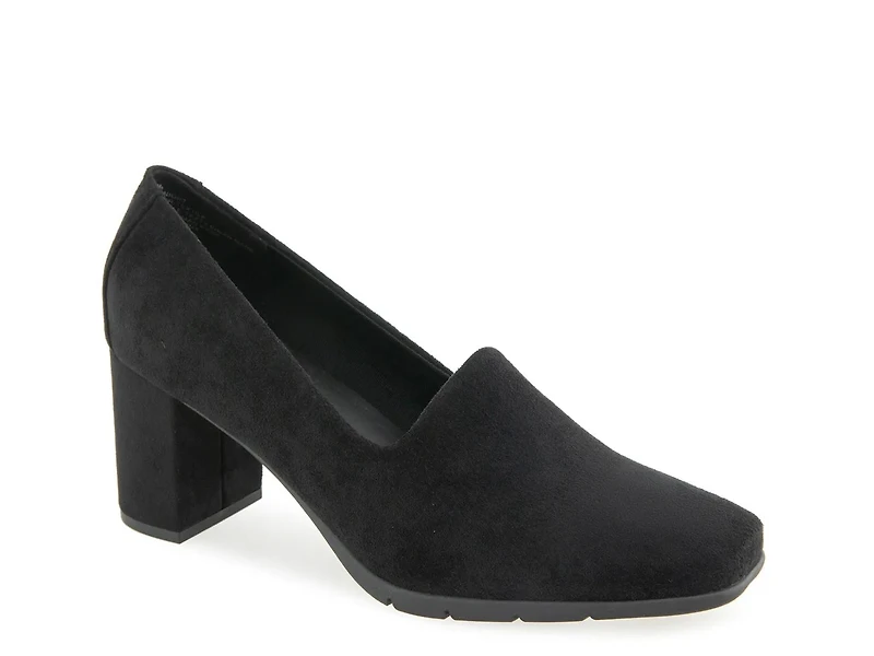 Minimal yet enchanting, the Aerosoles Midnight pump might be the one to elevate your look. A stretch gabardine construction offers a luxe appeal to the square-toe pump, lifted by a stacked block heel. Its Diamond Flex sole offers slip-free strolls.