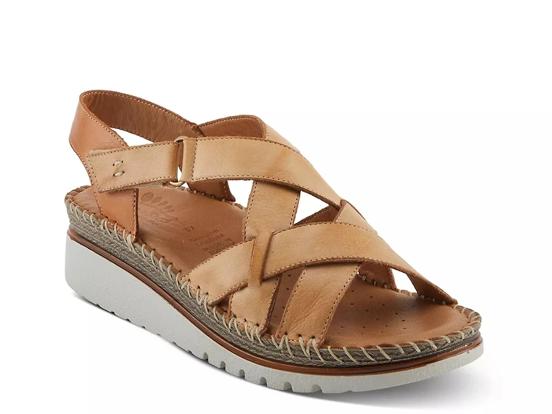 Embrace comfort without sacrificing fashionable looks with the Migula wedge sandal from Spring Step. Crisscross straps enhance the appeal of this leather sandal designed with leather footbed to pamper your feet and a hint of espadrille for a unique appeal.