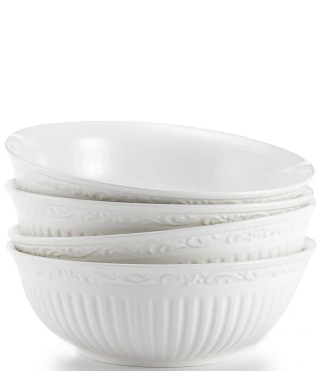Mikasa French Countryside Rippled Baroque Stoneware Cereal Bowls, Set of 4