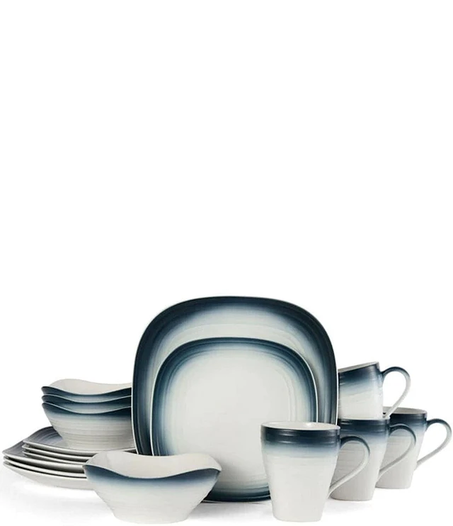 Mikasa Swirl Ombre Blue Square 16-Piece Dinnerware Set