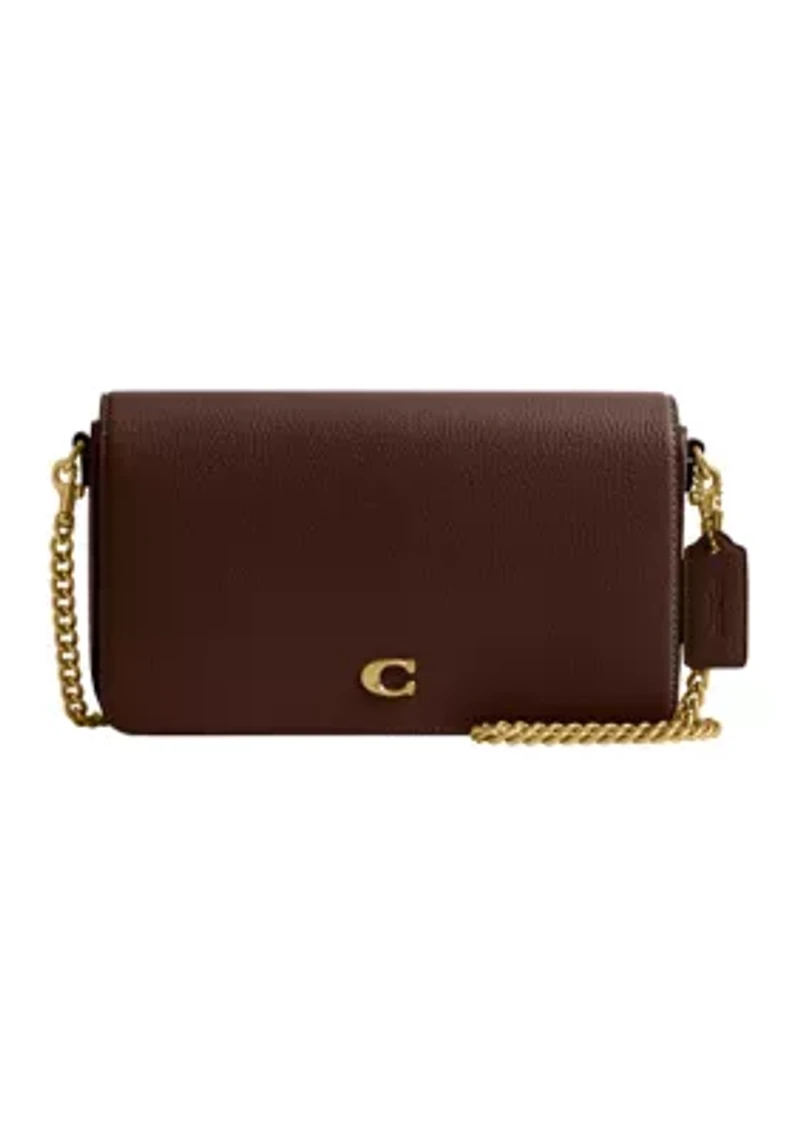 This polished pebble leather crossbody bag is a must-have for the modern woman. Crafted from luxurious leather, it features a spacious interior with multiple pockets for organization, including a removable zip pouch with six credit card slots. The detachable chain strap offers versatile styling options, allowing it to be worn on the shoulder or as a crossbody. With its sleek design and functional features, this bag is perfect for everyday use, adding a touch of sophistication to any outfit. Detachable chain strap with 21.5" drop for shoulder or crossbody wear Removable strap Exterior: open pocket Interior: multifunction pocket, removable zip pouch with six credit card slots Imported Product Specifications 8.25" L x 4.75" H x 1.25" W Material & Care Leather Spot clean only