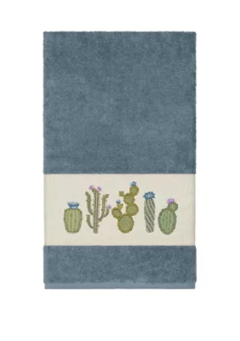 The Mila Embellished Towel Collection by Linum Home Textiles features whimsical blooming cactus in applique embroidery on a woven textured border. These soft and luxurious towels are made of Genuine premium Turkish Cotton and offer lasting absorbency and superior durability. Available in a range of lovely towel colors Embellished in USA Warranty available Made in Turkey Imported Product Specifications 27 in x 54 in Material & Care Superbly absorbent and quick drying Cotton Machine washable