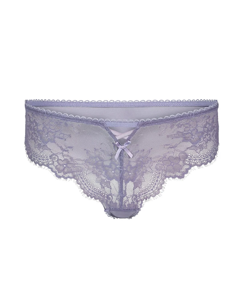 The Milena Cheeky Dark Purple lace cheeky is a bold-fashion standout, designed for comfort. It features a pull-on design, Mesh liner, Comfort elastic, regular rise, and lightweight fabric. (Available in sizes XS-XL.)