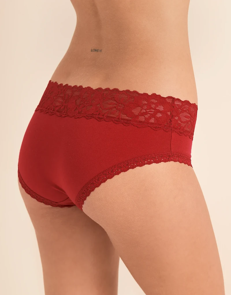 This hipster panty is made from extra-soft cotton and lace trim — giving you the perfect comfort level for everyday wear. (Available in sizes XS-4X)