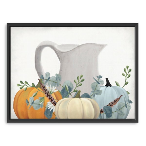 Bring some fall flair to your space with our Milk Jug Pumpkins Framed Canvas Art Print. You'll love having this autumnal accent hanging up in your home. Art measures 42L x 1.75W x 32H in. Distinctively printed on stretched canvas Wrapped edges complete the look Features milk jug and pumpkins subject Hues of white, orange, cream, and green Weight: 17.8 lbs. Hangs from back-mounted hardware Care: Dust with a soft, dry cloth. This item is available at Kirklands.com only, not available in stores. Please note: this item cannot be shipped to APO/FPO addresses.