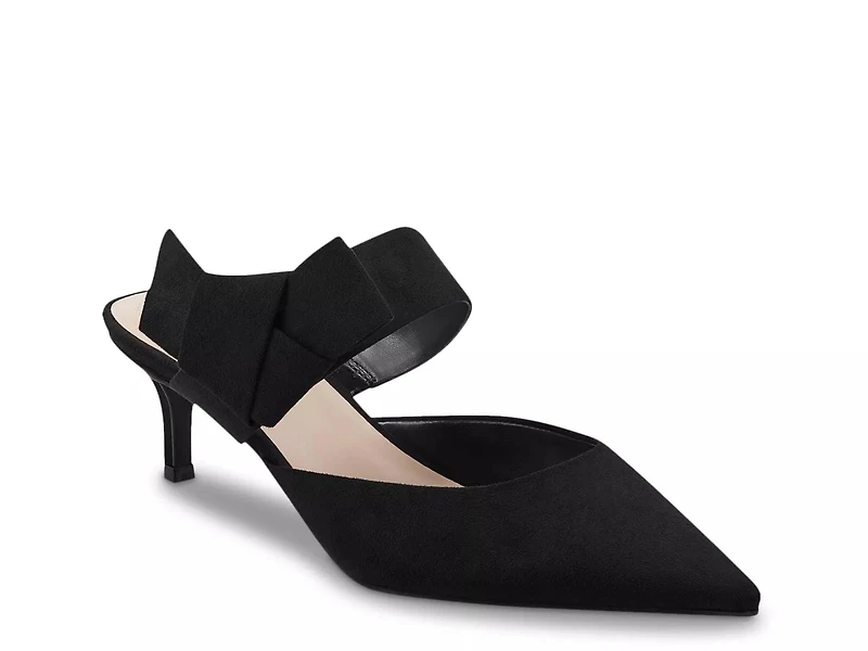 The Bandolino Millie mule pump with side bow accents adds a modern flair to your attire. Pointed toe design lends a chic appeal to this pump fashioned with a trendy kitten heel to elevate its style.