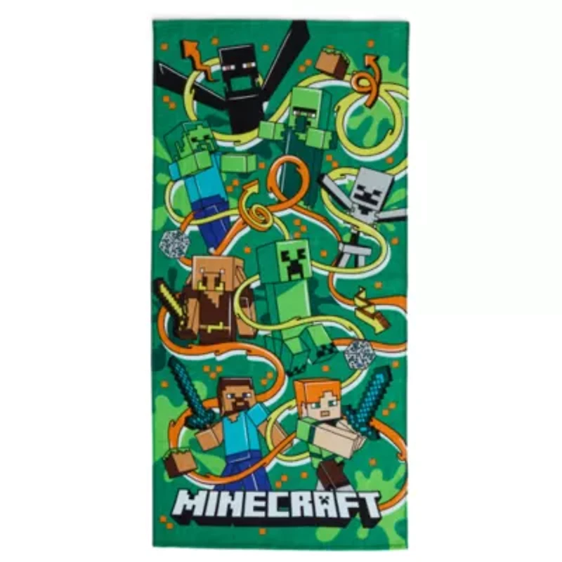 Bring home your favorite characters with this Minecraft towel. Great for the bath, pool, or beach, your child will love drying off in this beautifully designed towel featuring their favorite mobs Creeper, Zombie, Skeleton, and Enderman. Machine Washable.