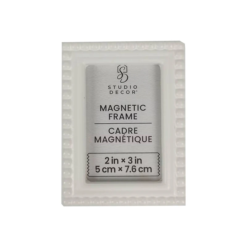 Show off a small snapshot with this stylish frame. The beaded edges add a special touch to the design, and the magnetic back makes it easy to display on refrigerators, cabinets and other metal surfaces.Details:Available in multiple colors2" x 3" (5cm x 7.6cm) image size4" x 6" x 0.59" (10.16cm x 15.24cm x 1.5cm) overall dimensionsComplies to TSCA Title VIMDF, magnet and PVC