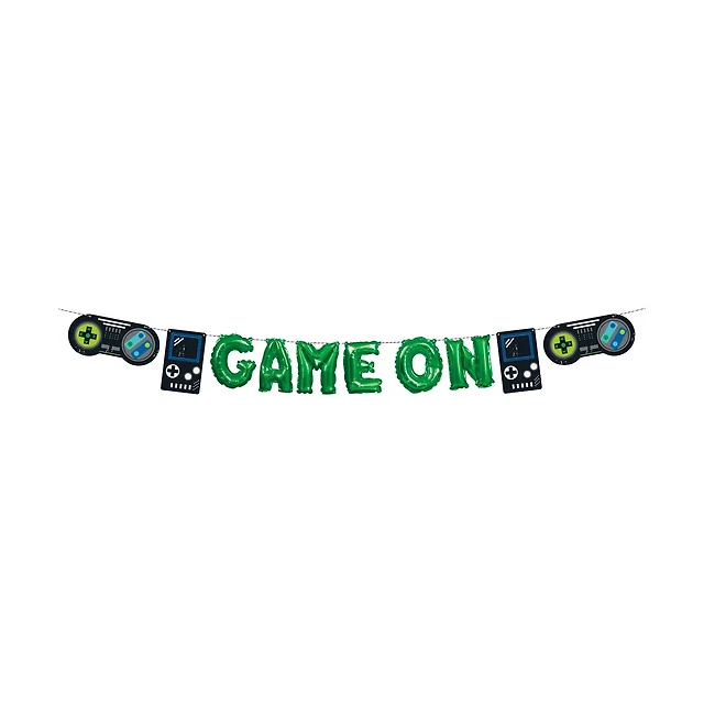 Mini Foil Gamer Birthday Balloon Banner Kit, 12 ft