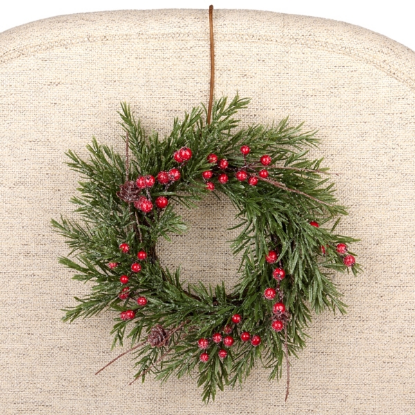Mini Snowy Japanese Pine Red Berry Wreath