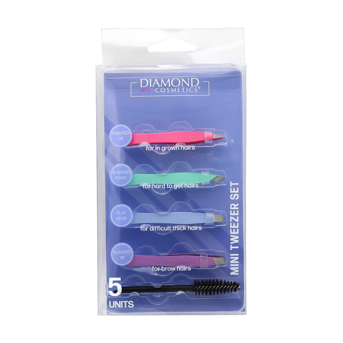 - Contains four tweezers & a mascara wand
