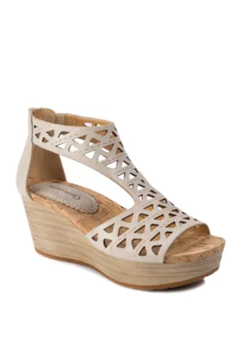Show off your fresh pedicure in the Miriam Wedge Sandal from BareTraps. Pair it with your favorite sundress for a summer-chic look. Back zip closure Open toe Cushioned insole Imported Product Specifications 2.5" heel Medium width Material Polyurethane