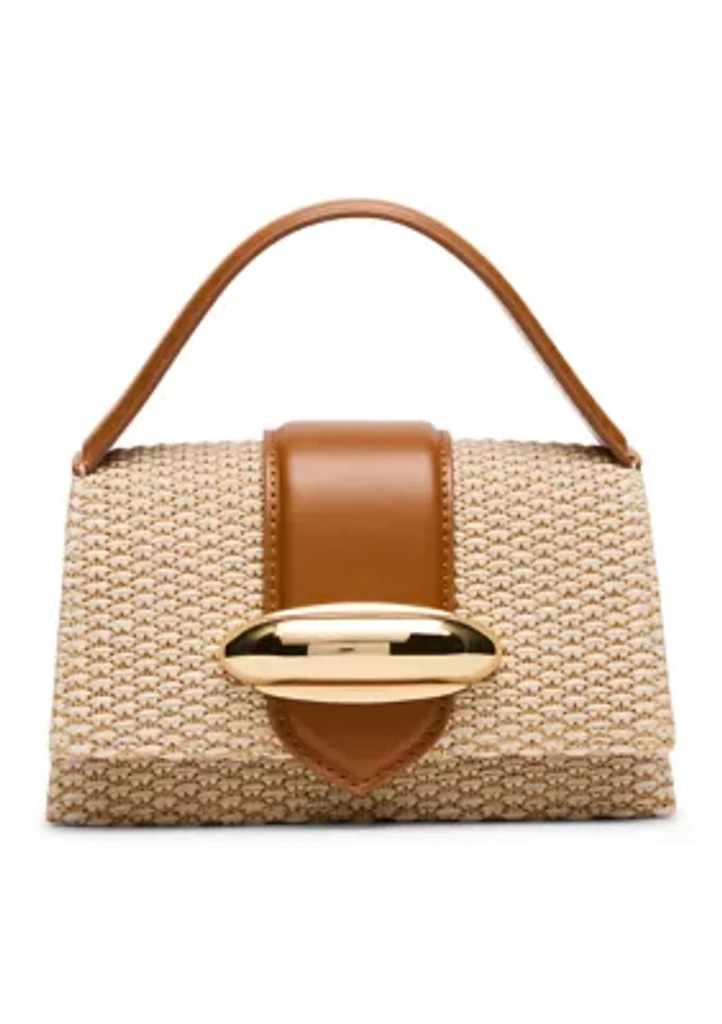This Steve Madden bag features a structured silhouette with a polished flap closure for timeless style. Designed with a top handle and crossbody strap, it offers versatile carrying options for everyday ease. 2.25" top handle, 24" removable crossbody strap Metal hardware Back wall slip pouch, backwall pocket Imported Product Specifications 3.75" x 7" x 2" Material & Care Straw Clean with a soft bristle brush and warm soapy water