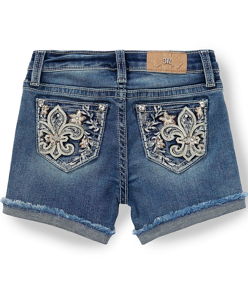 Miss Me Big Girls Fleur De Lis Embellished Pocket Rolled Hem Denim ShortsMiss Me Big Girls Fleur De Lis Embellished Pocket Rolled Hem Denim Shorts