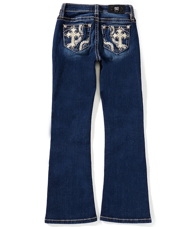 Miss Me Big Girls Mid-Rise Cross-Pocket Bootcut Jeans