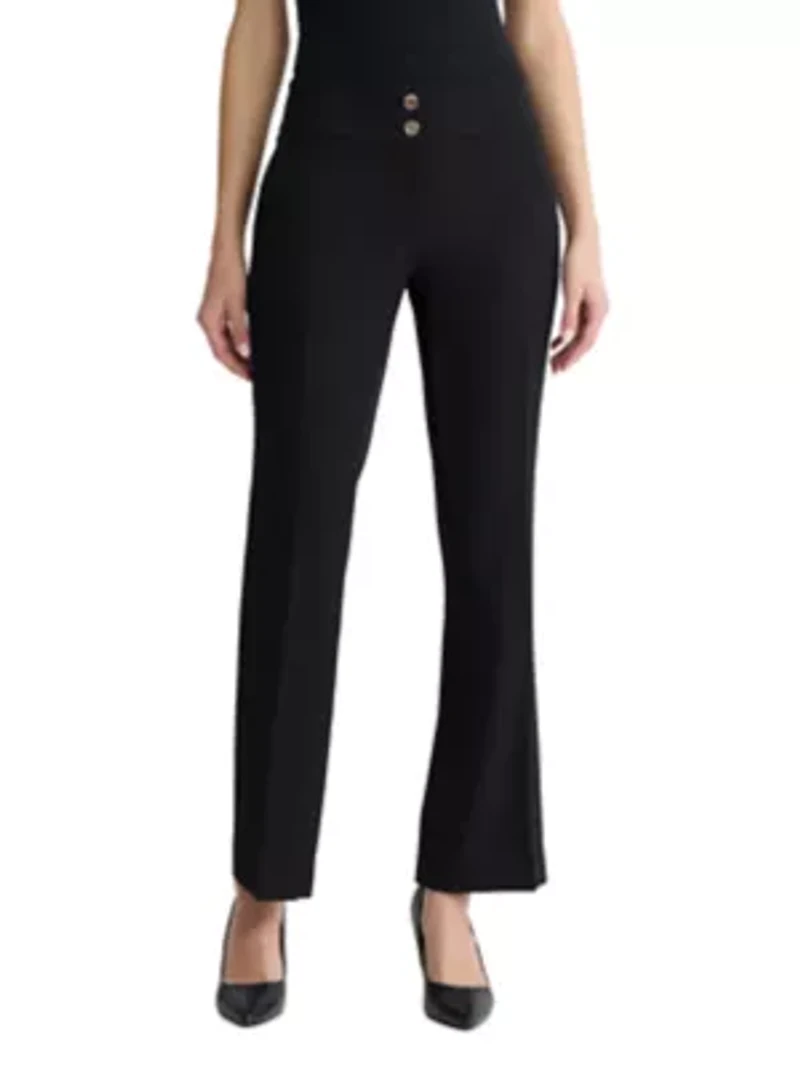 MISSY STRETCH CREPE AVA BOOTLEG PANT Zip closure Imported Product Specifications 31" Material & Care Polyester/Spandex Dry clean only