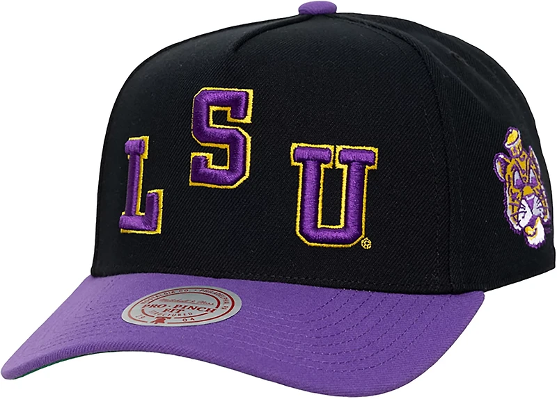 Get ready for the big game with the Mitchell & Ness Louisiana State University Legendary Away Pro Snapback Cap. The cotton poly fabric provides a comfortable feel, while the snapback closure offers a custom fit. The team logo shows off your Tigers pride.
