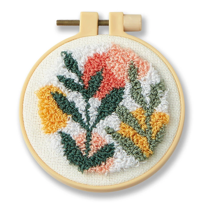 Bring a bit of nature indoors with this pretty botanical motif. This punch needle design stitches up quickly, make it a great weekend project.Details:Includes assorted colors3.5" x 3.5" (8.8cm x 8.8cm)Instructions includedLoops and Threads punch needle tool and threader sold separatelyCotton, polyester and plasticContents:6 cotton floss colors1 plastic embroidery hoop1 printed fabric panel