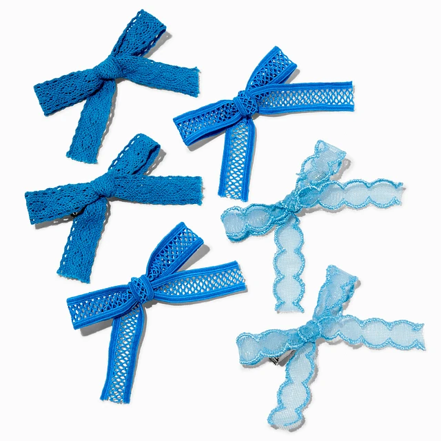 Mixed Blue Lace Hair Bow Clips - 6 Pack