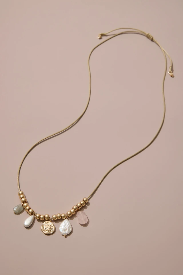 Gold Plated Mixed Charm Shell And Stone Necklace