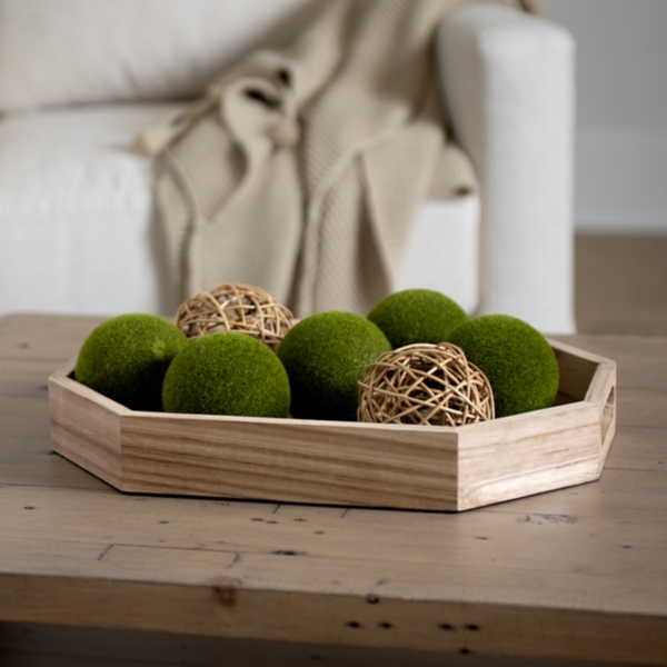 The Mixed Green Moss and Twig Orb Bag is a perfect way to add an earthy element to your space. You'll love how the natural textures pop from any decorative bowl. Bag includes seven (7) orbs Each orb measures 4 in. in diameter Crafted of 50% foam, 28% moss, 20% twig, and 2% glue Includes four (4) moss orbs and three (3) twig orbs Green moss finish Natural twine finish Comes in a clear bag Care: Dust with a soft, dry cloth. Contact your local Kirkland's store for availability. Quantities and selection may vary by location.