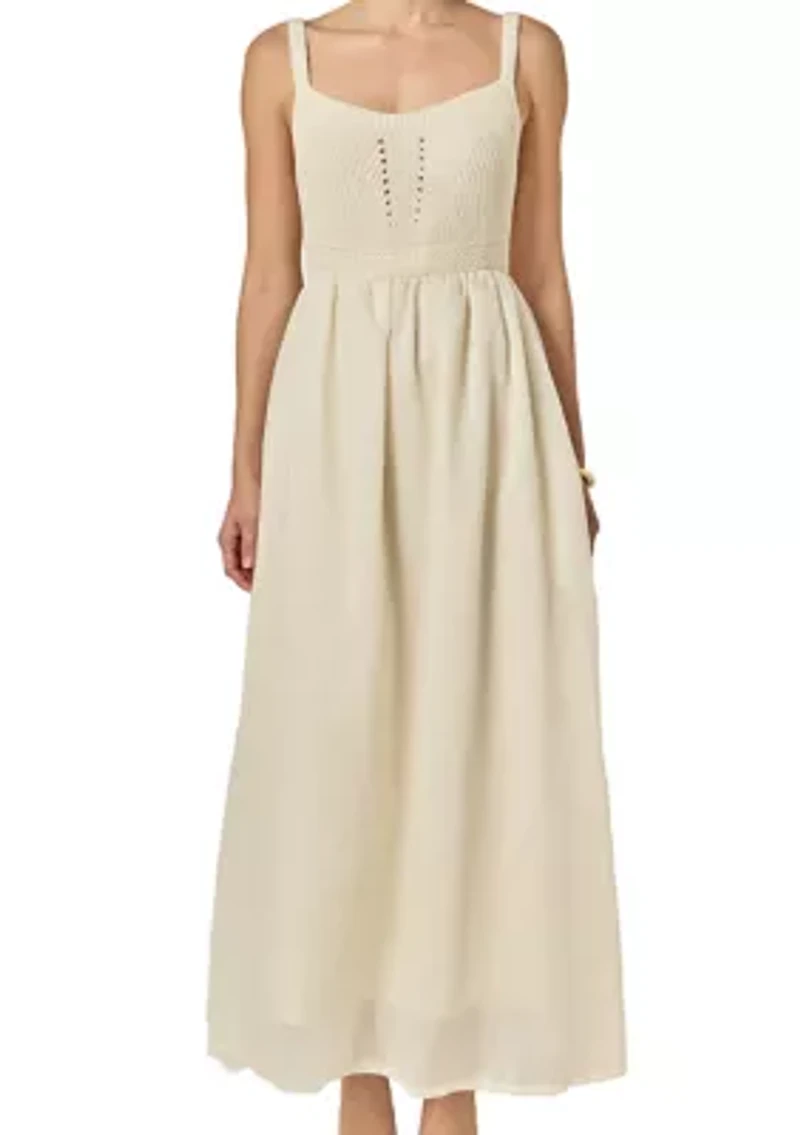 Introducing our latest must-have for all fashion lovers - the Mixed Media Sleeveless Midi Dress. This stunning dress features a chic square neckline and delicate shoulder straps that will accentuate your figure. The midi length adds a touch of sophistication perfect for any occasion. With back tie straps you can adjust and customize the fit to your liking. Made with a mix of high-quality materials this dress is guaranteed to stand out. Get ready to turn heads and be the envy of your friends with this versatile and fashionable dress. Shop now and elevate your wardrobe with this stunning piece! Tie closure Square neck Sleeveless China Imported Product Specifications Measurements from size Small: Total length: 47.5", Bust: 29.5" Material 100%Polyester