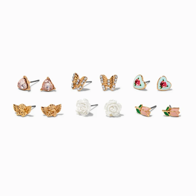 Gold Diamante Mixed Shaped Stud Earrings 6-Pack
