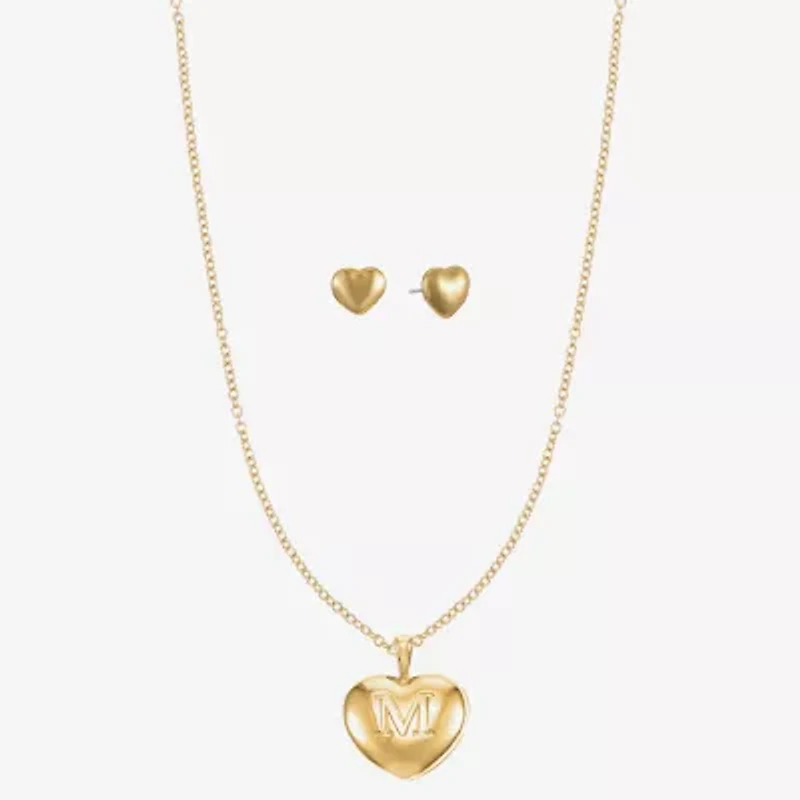Mixit Gold Tone Pendant Necklace & Stud Earrings Womens Heart Hypoallergenic 2-pc. Jewelry Set