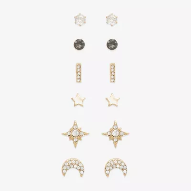 Mixit Stud Womens Cubic Zirconia Moon Star 6 Pair Earring Set
