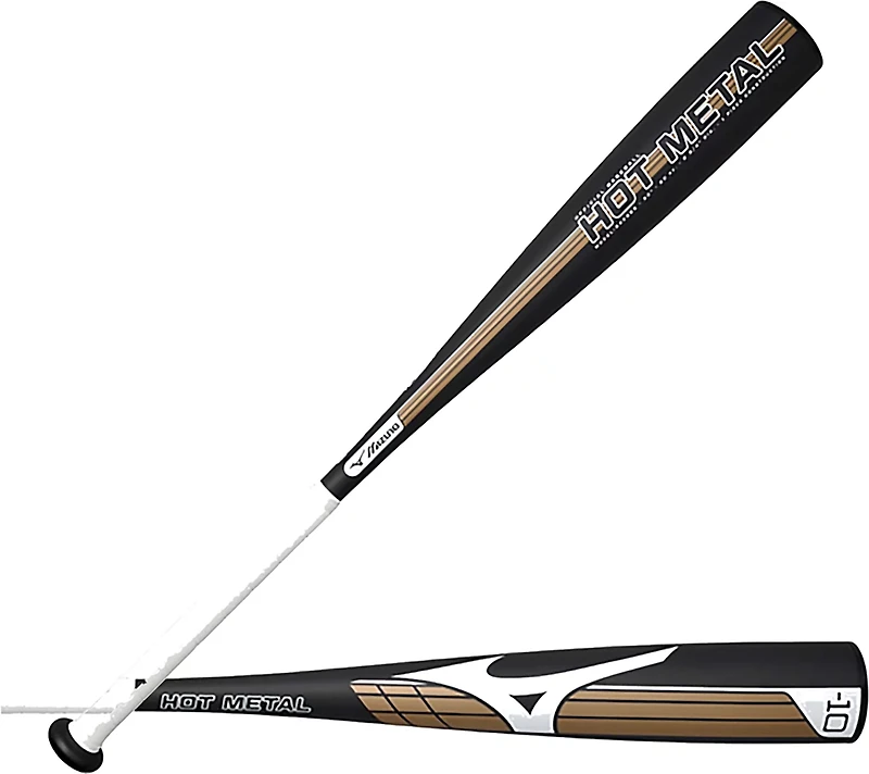 Take a swing with the Mizuno Hot Metal USSSA Baseball Bat -10. The one-piece construction delivers improved mobility and comfort, while the Hot Metal Alloy material provides increased pop and distance. The CORTECH technology produces a wider sweet spot and reduce MOI for more power, forgiveness and a faster swing speed, and the Speed-Helix grip ensures additional comfort.