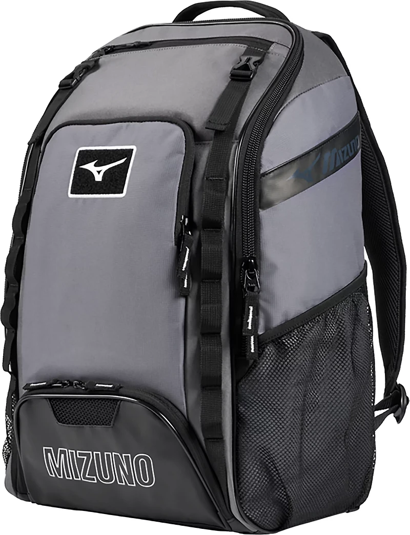 Carry your gear around in the Mizuno Organizer 26 White Backpack. Its polyester material enhances durability. The large main compartment with an organizer allows you to store all of your equipment, and its ventilated footwear storage compartment separates your shoes from rest of bag to protect your shoes. The 4 bat sleeves allow you to store multiple bats or use as an additional water bottle pouch.