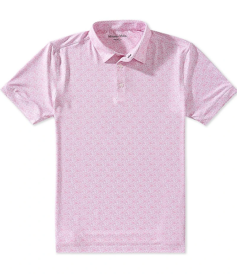 From Mizzen+Main, this polo shirt features: Floral print Polo collar Short sleeves 3-button placket Pullover construction Wrinkle resistant Antimicrobial Quick-dry properties Moisture-wicking UPF 50+ Stretch fabric Polyester/spandex Machine wash/tumble dry Imported.