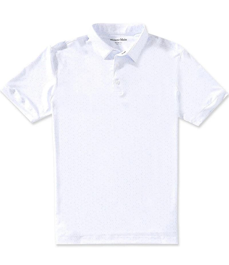 From Mizzen+Main, this polo shirt features: Dimple geo print Polo collar 3-button placket Short sleeves Pullover construction Wrinkle resistant Antimicrobial Quick-dry properties Moisture-wicking UPF 50+ 4-way stretch Polyester/spandex Machine wash/tumble dry Imported.